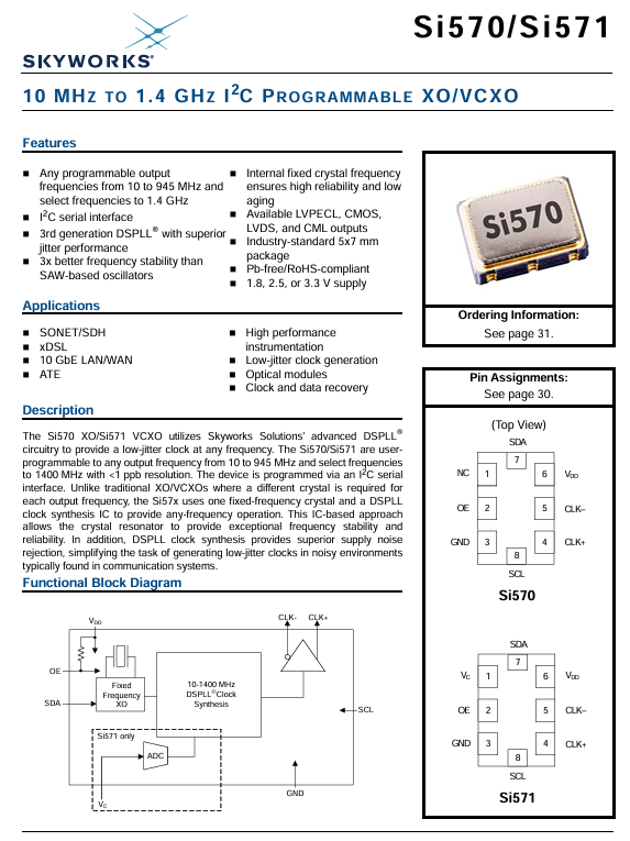 更多>>570DCA001230DG美國(guó)思佳訊Skyworks差分晶振7050八腳10M