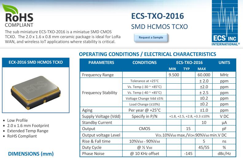 晶振之重,在于其為物聯(lián)網(wǎng)設(shè)備提供“心跳”般的精準(zhǔn)時(shí)鐘信號(hào).作為一款溫補(bǔ)晶振(TCXO),ECS-TXO-2016最亮眼的特質(zhì)便是-40~+85℃寬溫范圍內(nèi)2.5ppm的頻率穩(wěn)定度.這一精度意味著在極寒的極地探測或高溫的工業(yè)車間,設(shè)備時(shí)鐘誤差仍能控制在極低范圍.LoRaWAN等無線通信技術(shù)對(duì)時(shí)序同步要求嚴(yán)苛,正是這種穩(wěn)定性讓遠(yuǎn)程數(shù)據(jù)傳輸精準(zhǔn)無誤,避免了因時(shí)鐘偏差導(dǎo)致的信號(hào)失真或數(shù)據(jù)丟失,成為物聯(lián)網(wǎng)可靠運(yùn)行的“定盤星”.