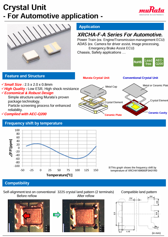 當(dāng)汽車從機(jī)械時代邁向智能時代,一枚看似微小的晶體單元,正成為驅(qū)動汽車電子革新的關(guān)鍵力量.日本村田諧振器XRCHA16M000F0A12R0石英晶振,以2.5x2.0x0.8毫米的方寸之軀,承載著汽車電子小型化與高精度的核心需求,彰顯著科技匠心的非凡力量.